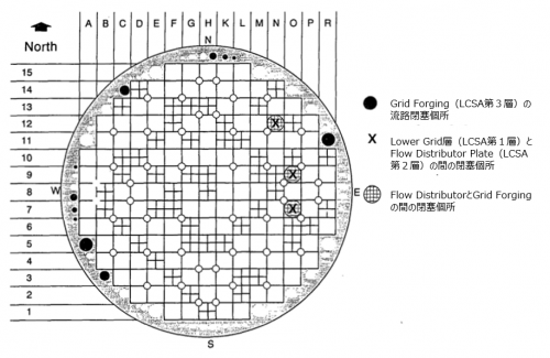 図16 LCSA第5層(EFD)の損傷位置とデブリ堆積・閉塞位置 [7]